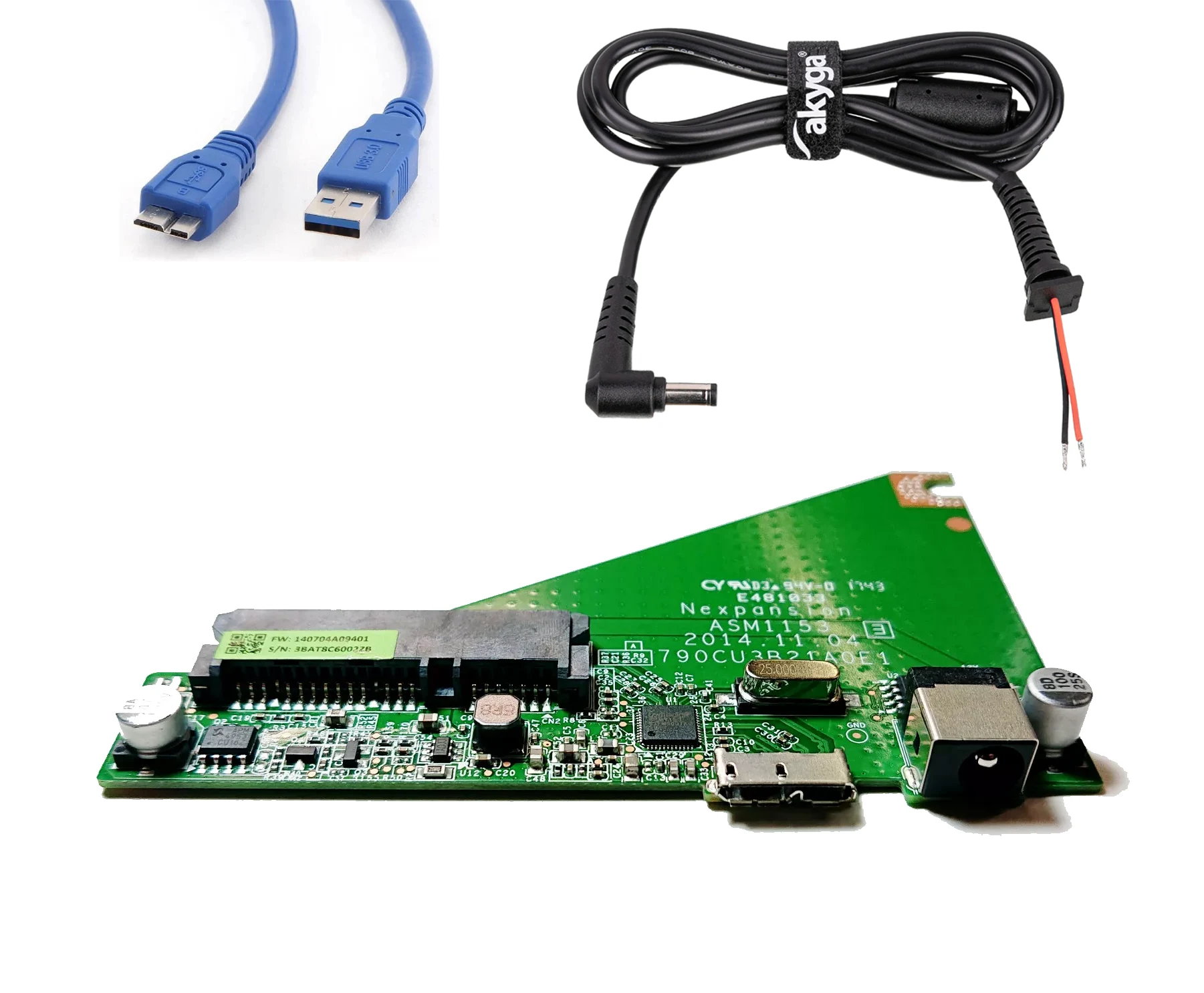 Univerzální náhradní elektronika a SATA/USB redukce – ASM1153 + USB kabel 50cm a napájecí kabel 1m